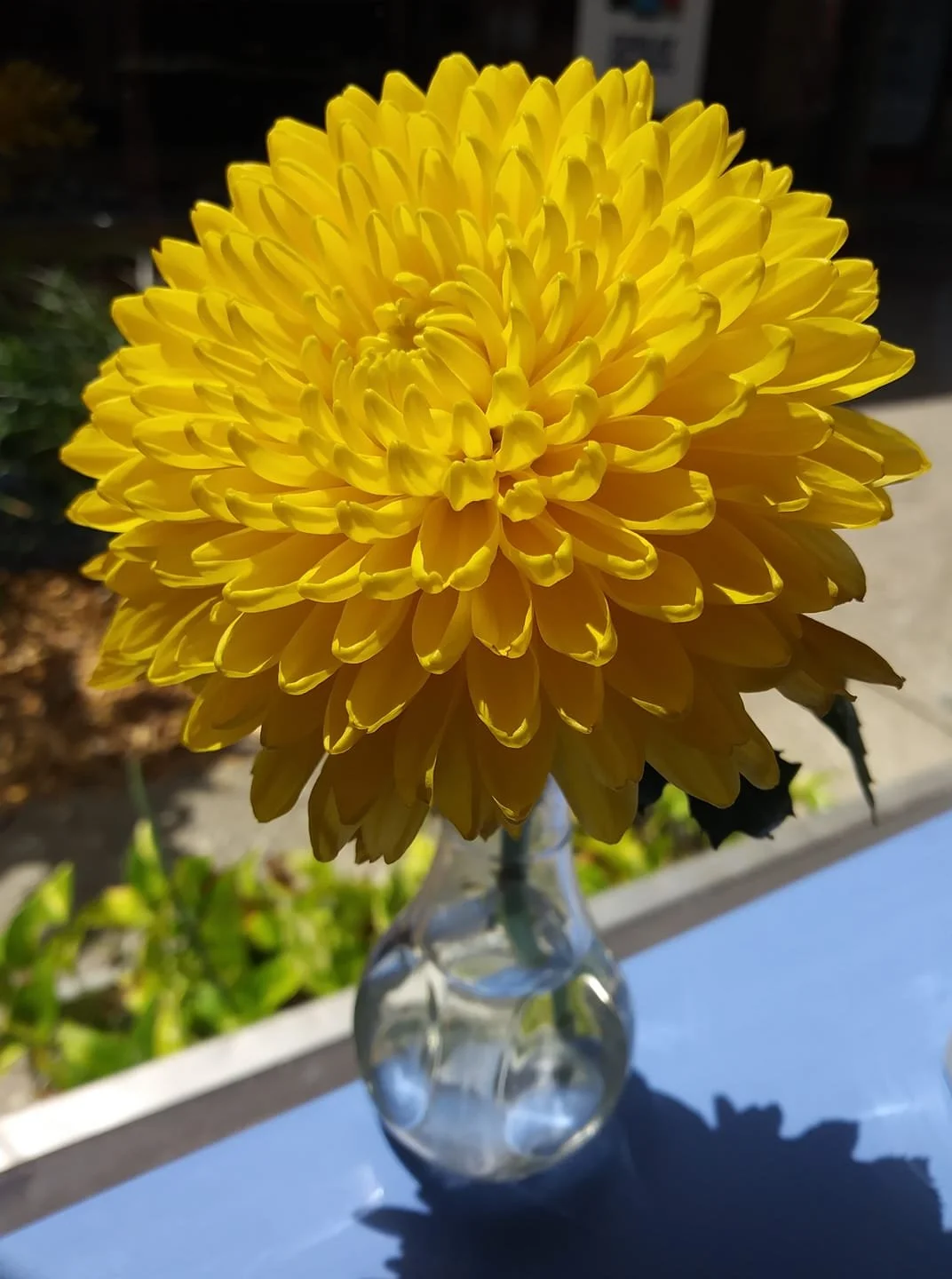 While visiting a local vegan restaurant with my husband, this lovely chrysanthemum was sitting in the window near our table, illuminated by the golden rays of the sun beaming through the glass.